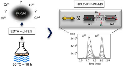 Representation of a valid methodology for determining CrIII and CrVI in sewage sludge samples by high performance liquid chromatography, inductively coupled plasma tandem mass spectrometry (HPLC-ICP-MS/MS).