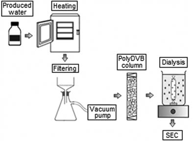Steps of the cleaning treatment for produced water aiming the analyses of the polymer by size-exclusion chromatography.