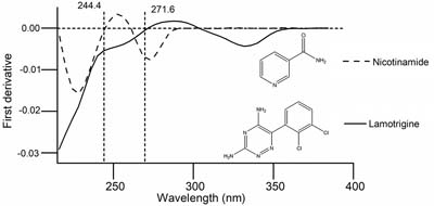 First-order derivative spectrum of lamotrigine and nicotinamide allows the simultaneous assay of the drugs in cocrystals.