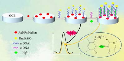 A sensitive electrochemiluminescence biosensing platform for the detection of Hg2+ was designed via dual-amplification strategy.