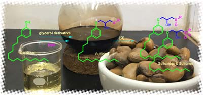 Twenty-eight novel organosulfur compounds were synthesized from a molecular combination of cardanol and glycerol derivatives, with excellent yields and employing more environmentally friendly processes.