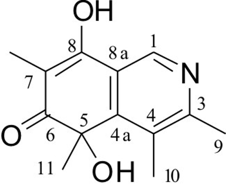 Investigation of the microbial fermentation organic extract of Penicillim sp. led to the isolation of new isoquinolinone alkaloid, (5S)-3,4,5,7-tetramethyl-5,8-dihydroxyl-6(5H)-isoquinolinone. It has a carbon skeleton similar to citrinin.