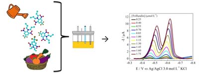 A simple, sensitive, fast and nontoxic electroanalytical methodology for the trifluralin herbicide determination in fresh food samples was developed using a polished silver solid amalgam electrode with square wave voltammetry.