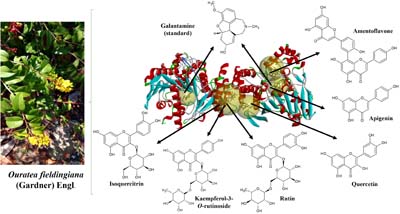Ouratea fieldingiana flavonoids present antioxidant and anticholinesterase activities and in silico studies showed that some of them bind probably to acetylcholinesterase (AChE) allosteric centers. All compounds can be considered promising agents to fight Alzheimer's disease.