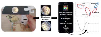 Smartphone microscope associated with chemometric methods used to evaluate the authenticity of a document.