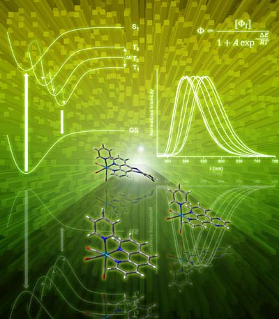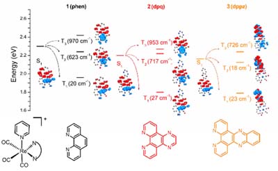 Unraveling the photophysical properties of polypyridyl ReI complexes with close-lying excited states by temperature-dependent luminescence measurements coupled with quantum-mechanical calculations. Details are presented in the Article Temperature Dependent Emission Properties of ReI Tricarbonyl Complexes with Dipyrido-Quinoxaline and Phenazine Ligands by Cristiane L. Ramos, Fernando S. Prado, Marcos Eduardo G. Carmo, Giliandro Farias, Bernardo Souza, Antonio Eduardo H. Machado and Antonio Otavio T. Patrocinio on page 425.