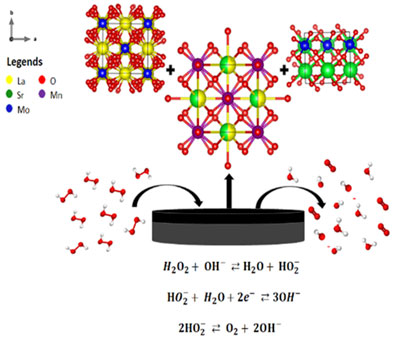 The performance in the hydrogen peroxide reduction reaction and oxygen reduction reaction of two catalysts, lanthanum manganite strontium-doped perovskite without (LSM) and with (LSMMO) mixed molybdenum oxides, was investigated and, the LSMMO had more significant catalytic activity than LSM after polarization.