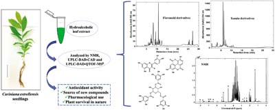 Cariniana estrellensis seedlings are used in forest restoration programs in the Atlantic Forest biome. We used rapid analysis by nuclear magnetic resonance and liquid chromatography coupled to diode array, charged aerosol, and mass detection to provide the first data on secondary metabolism from C. estrellensis. We identified hydrolysable tannins, hydroxycinnamic acids, and flavonoids.