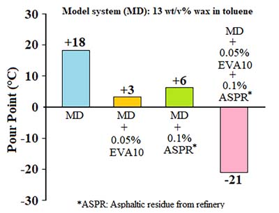 Synergistic effect of poly(ethylene-co-vinyl acetate) (EVA) copolymer and asphaltic residue from refinery on the reduction of pour point.