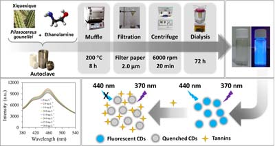 Carbon dots from Pilosocereus gounellei were used to develop a fast, low-cost, eco-friendly fluorescence flow-batch method for the determination of tannins in teas.