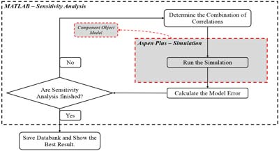 Communication between MATLAB and Aspen Plus software implemented to evaluate the studied correlations.
