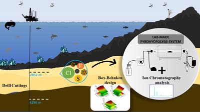 Depths profile distribution of Cl, F and S concentration in drill cuttings after sample preparation by pyrohydrolysis and determination by ion chromatography.