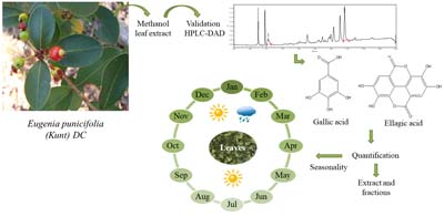 Identify, seasonally quantify gallic and ellagic acid by the liquid chromatography with diode array detector (HPLC-DAD) method and co-validate in extracts and fractions of Eugenia punicifolia leaves.