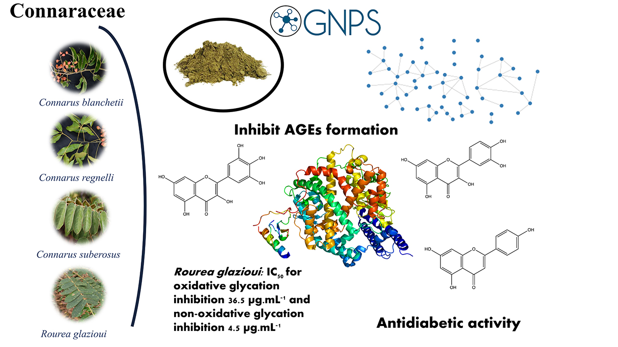The leaves of four species Connarus blanchetii, Connarus regnellii, Connarus suberosus and Rourea glazioui were subjected to different extractive processes and analyzed for chemical composition and pharmacological potential associated with the control of diabetes complications.