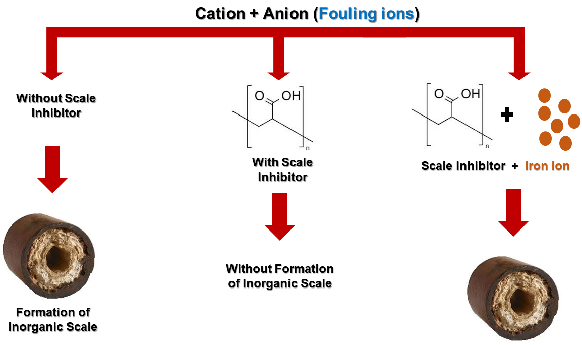 Scale inhibitor (poly(carboxylic acid)) performance can be significantly affected by the presence of Fe3+ ions.