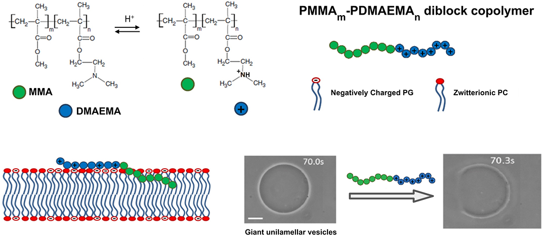 Poly(methacrylate) (PMMA) and poly((dimethylamino ethyl) methacrylate) (PDMAEMA) copolymers interaction with phospholipid model membranes and bacteria.