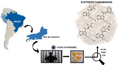 Despite coronavirus disease (COVID-19) closure of boards, trafficking of novel synthetic cannabinoids was still present, even inside prison facilities. During COVID-19 lockdown three synthetic cannabinoids were reported for the first time in Rio de Janeiro.