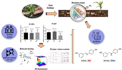 Study of anti-ureolytic activity and the interaction of the Schiff base 4-(3-hydroxybenzylideneamino) phenol (3B4) and its amine derived (3B4a) against urease.