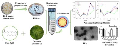 Development of a nanoemulsion based on kefiran and coriander essential oil to stabilize the essential oil compounds and preserve their antimicrobial properties to increase the stability of ricotta cheese.