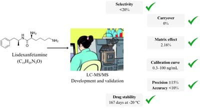 Development and validation of lisdexamfetamine using liquid chromatography-tandem mass spectrometry (LC-MS/MS) system applied for pharmacokinetic studies.