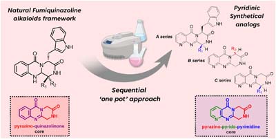 2,5-Diketopiperazine-derived quinazolinones are key structures in fumiquinazoline alkaloids, known by their pyrazino[1,2-b]quinazoline-3,6-dione framework and notable biological activities. In this study, we synthesized 19 novel fumiquinazoline-like analogs, divided into three series (A, B, and C), with a modified pyrazino-pyrido-pyrimidinone core, offering potential for further biological research.