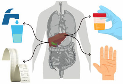Exposure routes to bisphenol A from drinking water and thermal paper, with urinary excretion as a biomarker.