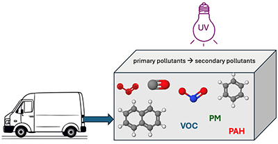 Environmental chamber used to sample primary pollutants and convert them into secondary pollutants using UV lamps to simulate sunlight.