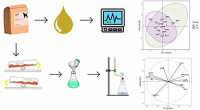 The composition of fatty acids and antioxidants in dry extruded food for dogs and cats using gas chromatography flame ionization detector (GC-FID) and high-performance liquid chromatography with a diode-array detector (HPLC-DAD) techniques.
