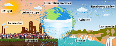 This graphical abstract depicts the environmental and anthropogenic factors contributing to the degradation of face masks into microplastics and nanoplastics, highlighting their potential pathways across urban and natural ecosystems.