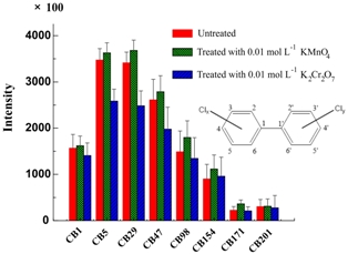 Polychlorinated biphenyls were highly sensitively determined in seawater containing large amounts of humic substances by combining KMnO4 treatment and headspace solid-phase microextraction coupled with gas chromatography-mass spectrometry with the aid of experimental design