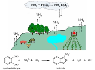 An easy method of application was developed for the determination of ammonia in ambient air. The samples are collected using cellulose filters impregnated with oxalic acid, followed of fluorimetric detection. The method is reliable for measuring low concentrations of ammonia and where there are rapid fluctuations in their concentrations