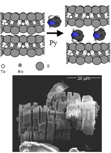 The structural and electrical behavior of three TaxMo1-xS2 phases and their intercalation products with lithium, pyridine and poly(ethylene oxide) were studied and characterized by means of X-ray powder diffractometry (XRD), thermogravimetric and differential thermal (TGA/DTA) analyses, energy dispersive X-ray fluorescence (EDX) and field emission-scanning electron microscopy (FE-SEM) techniques. The electrical conductivity was measured under a 9 T magnetic field in order to verify the occurrence of magnetoresistivity phenomena