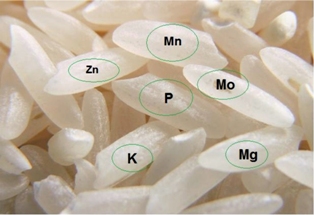 The extraction of metal ions present in rice samples with ammoniacal solution of EDTA (pH 10) as extracting agent allowed the determination of P, K, Mg, Ca, Zn, Mn, Cu and Mo in rice samples of type "integral", "agulhinha" and "parboiled"