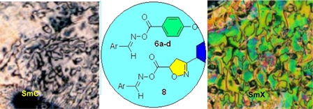 The synthesis of a series of unstable fluorescent liquid-crystalline arylaldoxime esters 6a-d and 8 is reported. The chemical stability and liquid-crystalline as well as the photophysical properties of the title compounds are described and showed to be dependent on the heating/cooling cycles