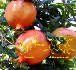 Bioassay-guided chemical investigation on the EtOH extract of the peels of Punica granatum led to the isolation of 17 compounds including one new oleanane-type triterpene named punicaone. Flavogallonic acid exhibited the strong fatty acid synthase (FAS) inhibitory activity with IC50 10.3 µmol -1