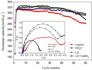 Fluorination treatment improves the discharge capacity and cycle durability of M1Ni3.5 Co0.6 Mn0.4 Al0.5 alloy, which is attributed to a relatively lower cell volume changes during hydriding/dehydriding. Moreover, the electrochemical reaction resistance of the alloy electrode decreases after the treatment