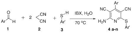 Environmentally benign and eco-friendly protocol has been developed for the synthesis of 2-amino-3,5-dicarbonitrile-6-thio-pyridine from aldehyde, malononitrile and thiophenol