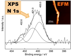 How to cite this articleFunctionalization or chemical modification of carbon nanotubes through the covalent attachment of atoms or molecules to the surface has been used to introduce chemical specificity allowing their processability in different environments. Evaluating the functionalization distribution of groups on the carbon nanotube surface is an important task. It can be achieved by monitoring the phase shift with electric force microscopy (EFM). The images obtained give qualitative information of the local charge distribution through contrast in areas where the conductivity varies.
