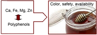 Silica gel with bonded phenyl active groups was used to separate the hydrophobic fraction of Ca, Fe, Mg and Zn in dark honeys. Fe was found to be associated with this fraction to the highest degree (7-43% of its total). A strong positive correlation was established between the concentration of Fe in the hydrophobic fraction and the optical density of dark honeys