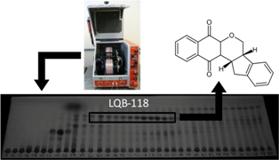 Countercurrent chromatography (CCC) was employed as a useful, fast and economic alternative to conventional chromatography techniques for the purification of a synthetic pterocarpanquinone, LQB-118