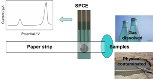 Filter paper strip is combined with screen-printed carbon electrodes (SPCE) to assemble a microfluidic device for detecting Pb(II) and Cd(II) in aqueous samples. The portable microfluidic devices are demonstrated for direct quantification of Pb(II) and Cd(II) in aqueous samples without pretreatment of contaminated samples