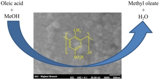 Sulfonated ordered mesoporous polymers were prepared by co-mixing p-formaldehyde, p-toluenesulfonic acid (p-TsOH), sulfuric acid and mesoporous silica (SBA-15 or MCM-48) as a template. The prepared materials were applied as catalyst in oleic acid esterification with methanol