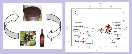 Metabolites were monitored during jabuticaba fermentation by 1H nuclear magnetic resonance and spectrophotometric assays. Multivariate methods revealed the influences of alcohols and organic acids on the extraction and stability of phenols and color properties