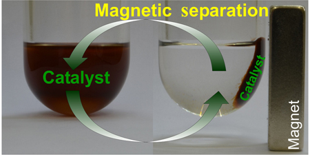 The immobilization of catalytic active species (metal nanoparticles, metal complexes, enzymes, organocatalysts, etc.) on superparamagnetic nanoparticles allows the facile separation of catalysts from the reaction mixture with the application of an external magnetic field