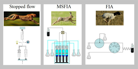 The bromine generation and the bromine-salicylic acid reactions have been used for validation of MSFIA in the zone stopping mode. The performance of the technique stays between those of FIA and the classical stopped-flow technique