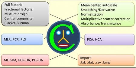 Chemoface is a free computational tool with user-friendly graphical interface, which is able to work with chemometric methods related to experimental design, pattern recognition, classification and multivariate calibration