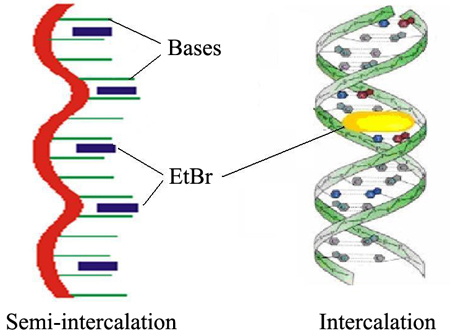 Semi-intercalating binding of EtBr occurs along with the ordinary intercalation