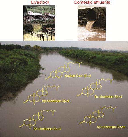 An evaluation of the contamination by sewage in sediments on a regional scale was performed in the Iguaçu River by considering sterols as indicators. Domestic effluents and manure from rural areas are the main source of contamination. The release of untreated sewage may pose a threat to river health during periods of small river water flow