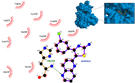 Docking studies showed that hydrophobic and H-bond interactions are the key factors in the interactions between ALK5 and its inhibitors. Descriptors emerging from docking and molecular structure were used in structure-based QSAR model