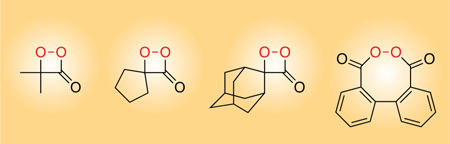 The synthesis, purification and characterization of diphenoyl peroxide and three 1,2-dioxetanones (α-peroxylactones), important high-energy intermediates in chemi and bioluminescence transformations, are reported